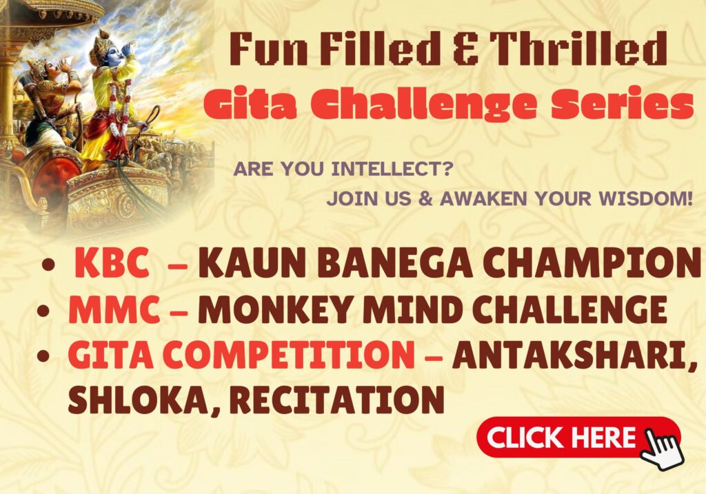 At ISKCON Hadapsar we help children, youth and adults connect with the Bhagavad-Gītā through recitation, quizzes, storytelling and creative learning. These activities make the Gītā’s teachings practical for daily life.